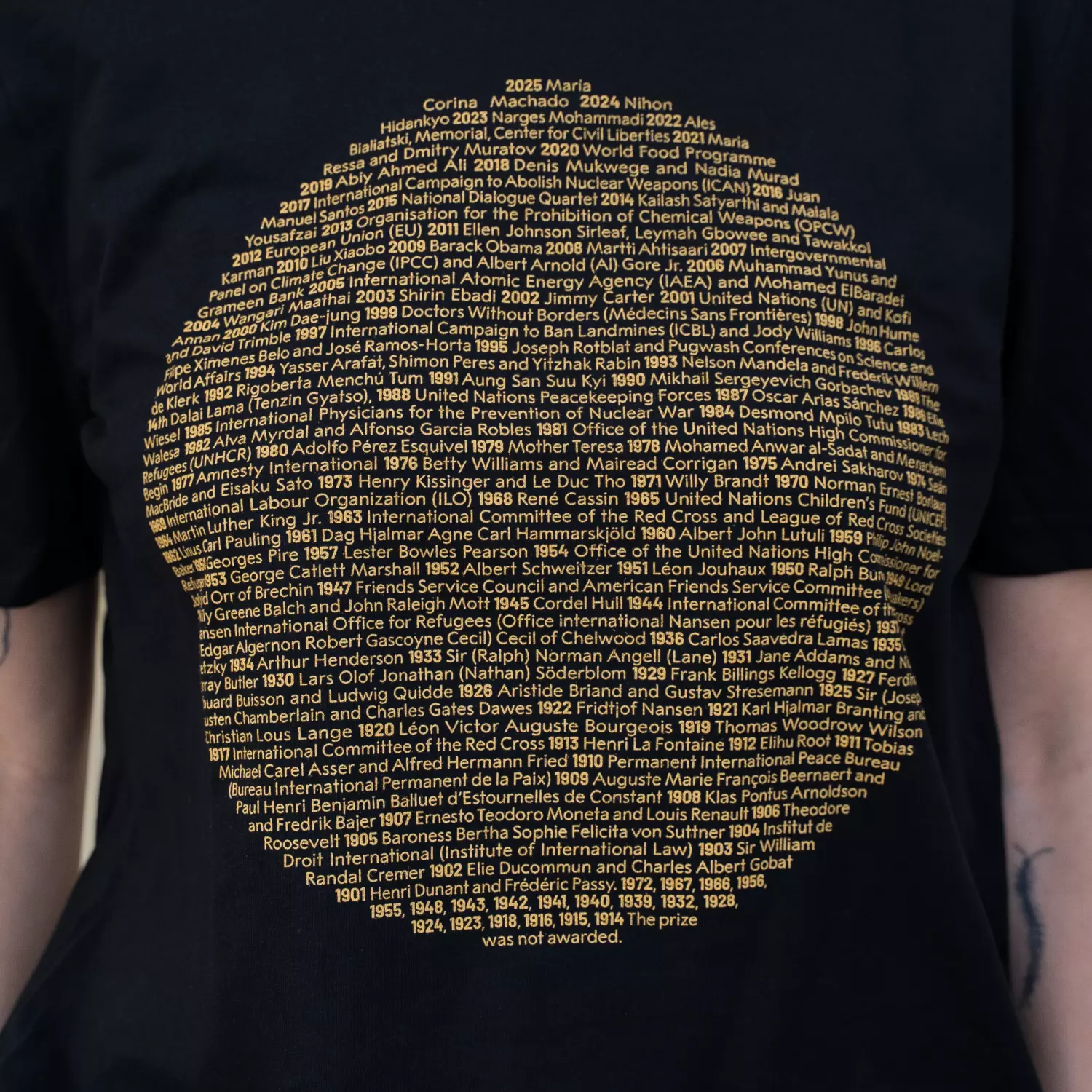 En unik t-skjorte som hyller alle Nobels fredsprisvinnere gjennom tidene. Perfekt for deg som ønsker å bære et sterkt symbol på fred og håp.